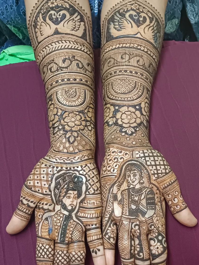 Your wedding mehendi should be as unique as your love story. I specialize in creating custom designs that weave in personal elements, from detailed portraits of you and your partner to names, dates, and symbols that are meaningful to your journey together.