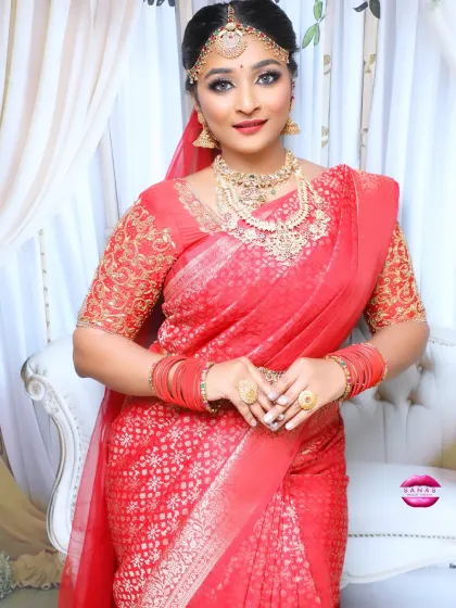 I specialize in creating authentic South Indian muhurtham looks. From perfectly draping a Kanjivaram saree to placing traditional temple jewellery, I ensure every detail is perfect for your big day.