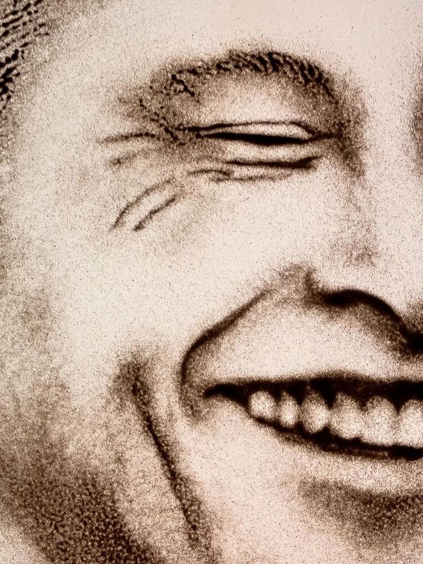 I create detailed, sustainable portraits from sand, capturing the essence of public figures, family members, or personal icons. Each piece is a unique, eco-friendly way to immortalize a memory or an inspiration.