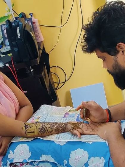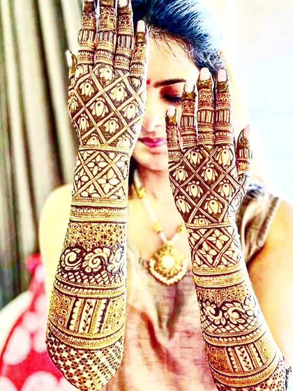 I specialize in creating fully personalized bridal mehndi that tells your unique love story. We can include anything from couple portraits and wedding dates to special quotes or symbols that are meaningful to you.
