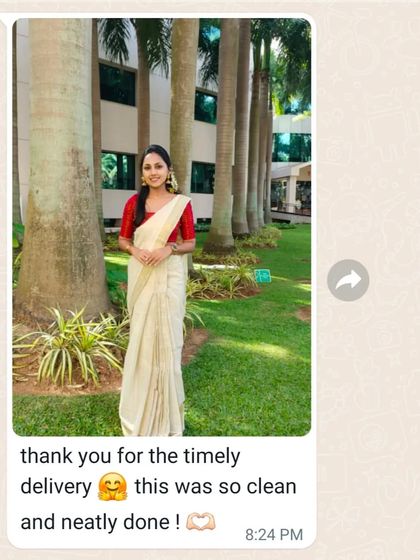 I pre-pleat and finish your saree to fit your body, so you can wear it in minutes and pack it without creases.