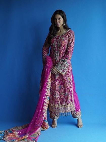 This is where I mix tradition with a fresh twist. I create contemporary silhouettes like bralette blouses with lehengas and statement jackets, or edgy peplum tops with flared pants for a look that's uniquely you.