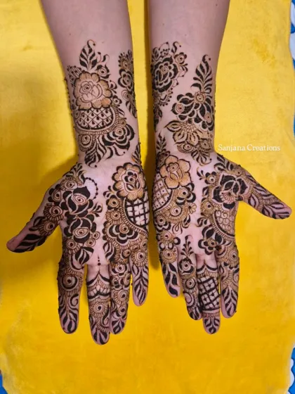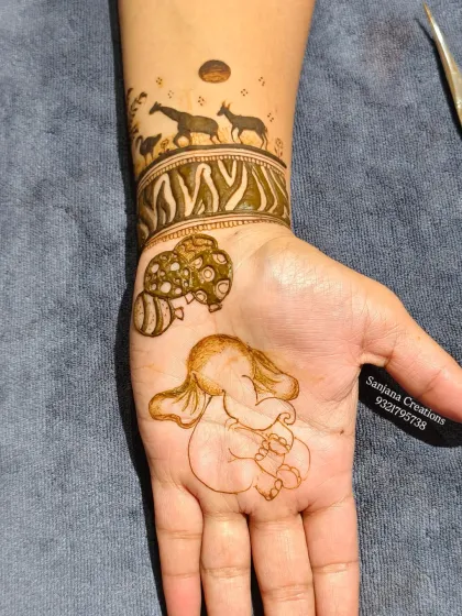 Hi, I’m Sanjana - Mumbai’s own mehndi girl, always on the move. Sometimes you’ll spot me making mehndi cones in a local train, chasing dreams and deadlines! For me, mehndi is not just pretty patterns, it’s about stories - like that baby elephant for a mom-to-be, or a daughter-mom portrait. Yeh zindagi meri hai (this life is mine), and my art is my voice. Still a kid at heart, just swapped crayons for cones.
