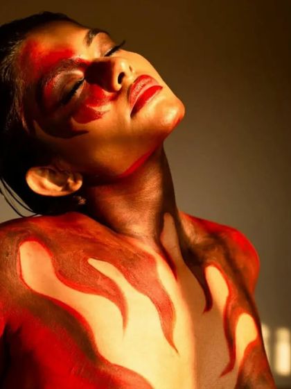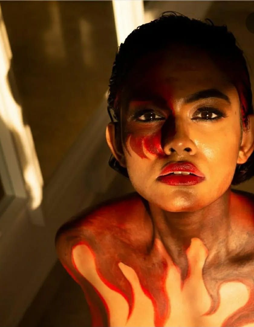 I treat the body as a canvas for storytelling. This includes everything from full-body painting with themes like fire and nature, to creating specific characters like gothic, tribal, or futuristic beings for shoots and videos.