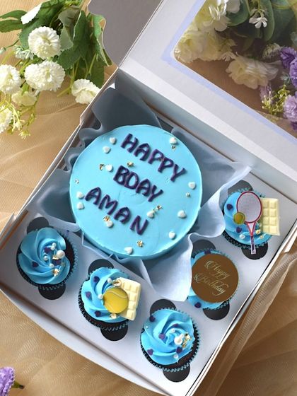 - Mini Hamper: 1 Bento Cake + 2 matching Cupcakes in a window box.