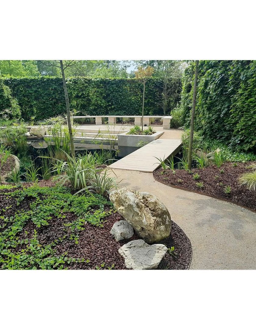 For the International Garden Festival in France, we built a garden based on the Indian concept of 'Devrai' or a sacred forest. This project showcases our philosophy of resilience by creating a biodiverse habitat with a water-harvesting 'kund' (pond), native and adaptive plantings, and spaces for quiet reflection.