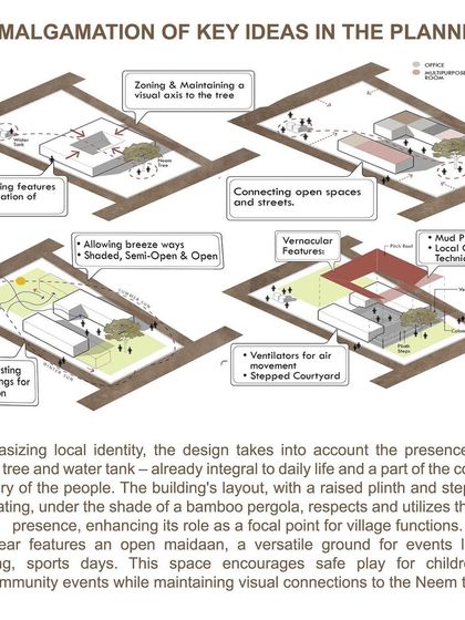 This gallery presents our conceptual work for a rural community center in Andhra Pradesh, based on the 'Gramam Pranganam' or village courtyard. These diagrams and renderings show how a single space can be designed to serve diverse community needs, from social gatherings and education to healthcare.
