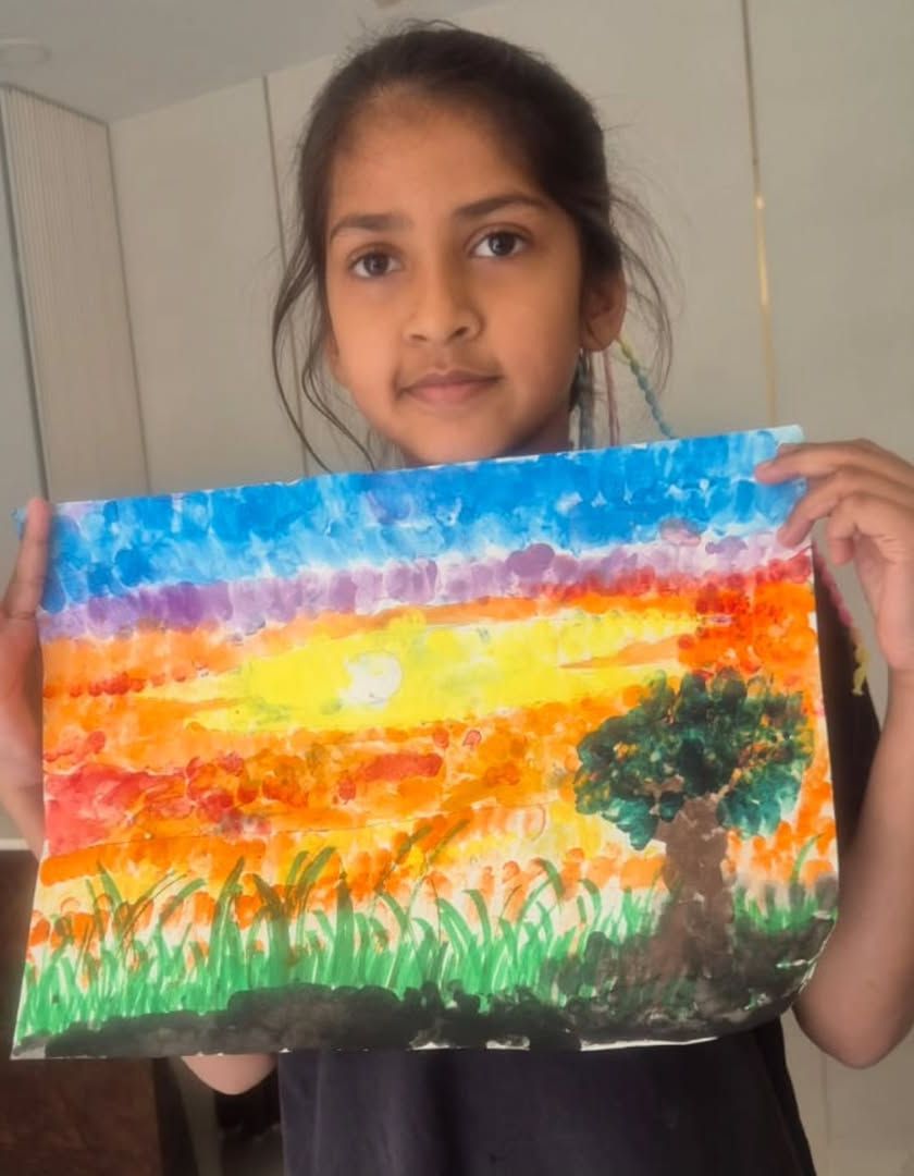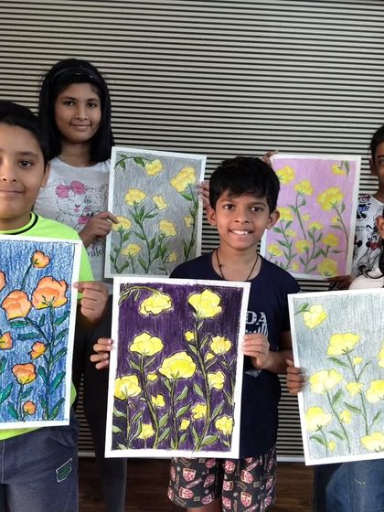 Students explore a world of color with watercolors, poster colours, and acrylics on paper and canvas. We guide them through various techniques, from still life studies to imaginative landscapes and abstract designs.