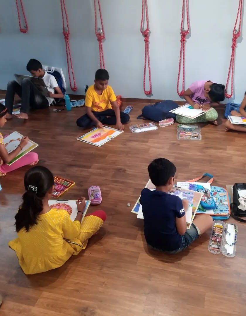 Here's a look inside our vibrant learning spaces. We offer both collaborative in-person studio sessions in Mumbai and interactive online classes via Google Meet, so your child can learn and create from anywhere.