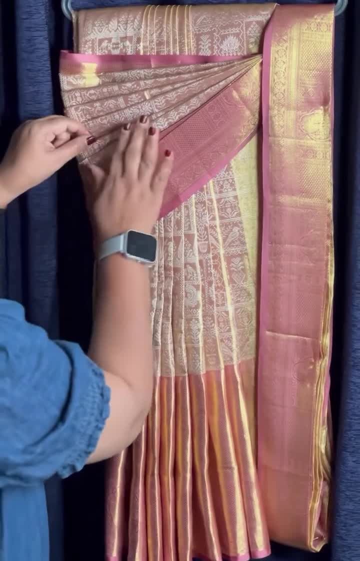 My pre-pleating and box-folding service is designed for your convenience. I meticulously pleat, iron, and fold your saree before the event, so on the day, it can be draped perfectly in just a few minutes, ensuring your pleats remain sharp and elegant all day long.