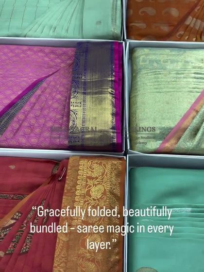 For a stress-free experience, try my pre-pleating service. Just drop off your saree, and I'll have it perfectly pleated, pressed, and ready for you to wear in just two minutes. Tumba easy! You can choose between hanger folding for easy transport or box folding for storage.