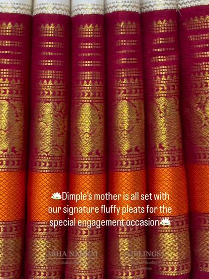 I understand how busy event days can be. I offer delivery of pre-pleated sarees across Bangalore. For any last-minute saree emergencies, just visit my studio in Nagarabhavi, and I'll get you ready in 15-20 minutes.