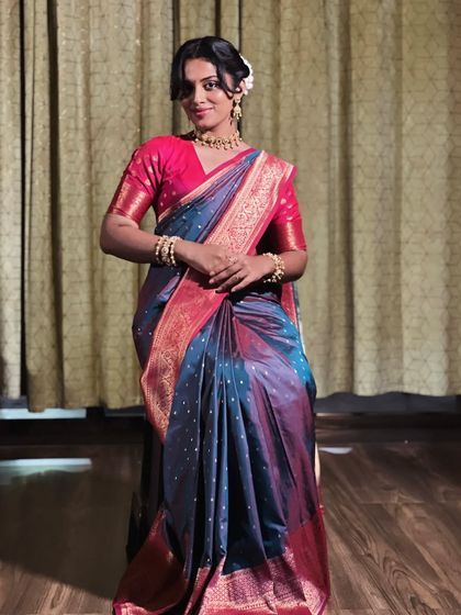 I specialize in bridal saree draping, combining traditional elegance with contemporary styles. My service includes personalized draping consultation, pre-pleating, and styling to ensure your bridal saree stays perfectly in place throughout your special day.