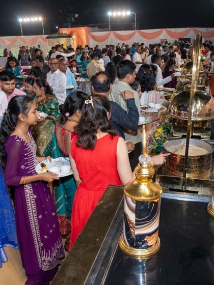 We cater pure vegetarian, traditional meals for community and religious events, handle crowds up to 1500, and offer pangat, buffet, and live counters as needed.
