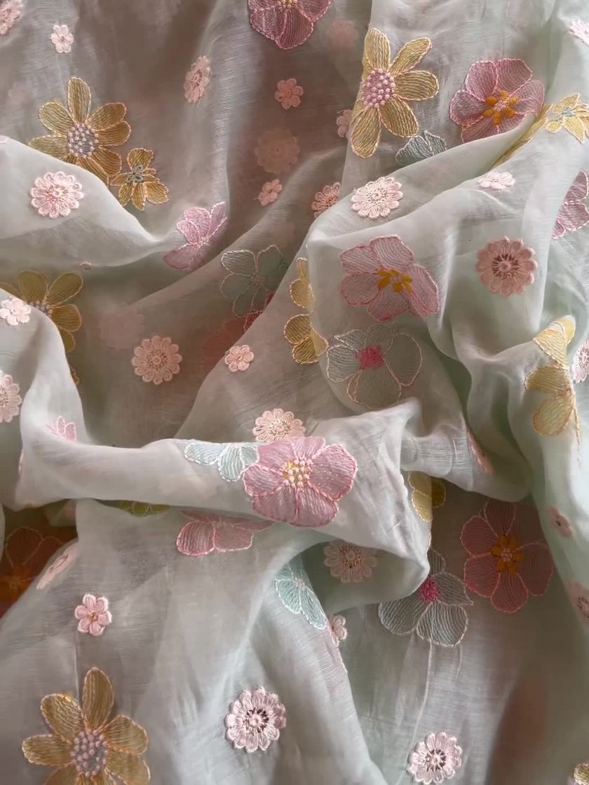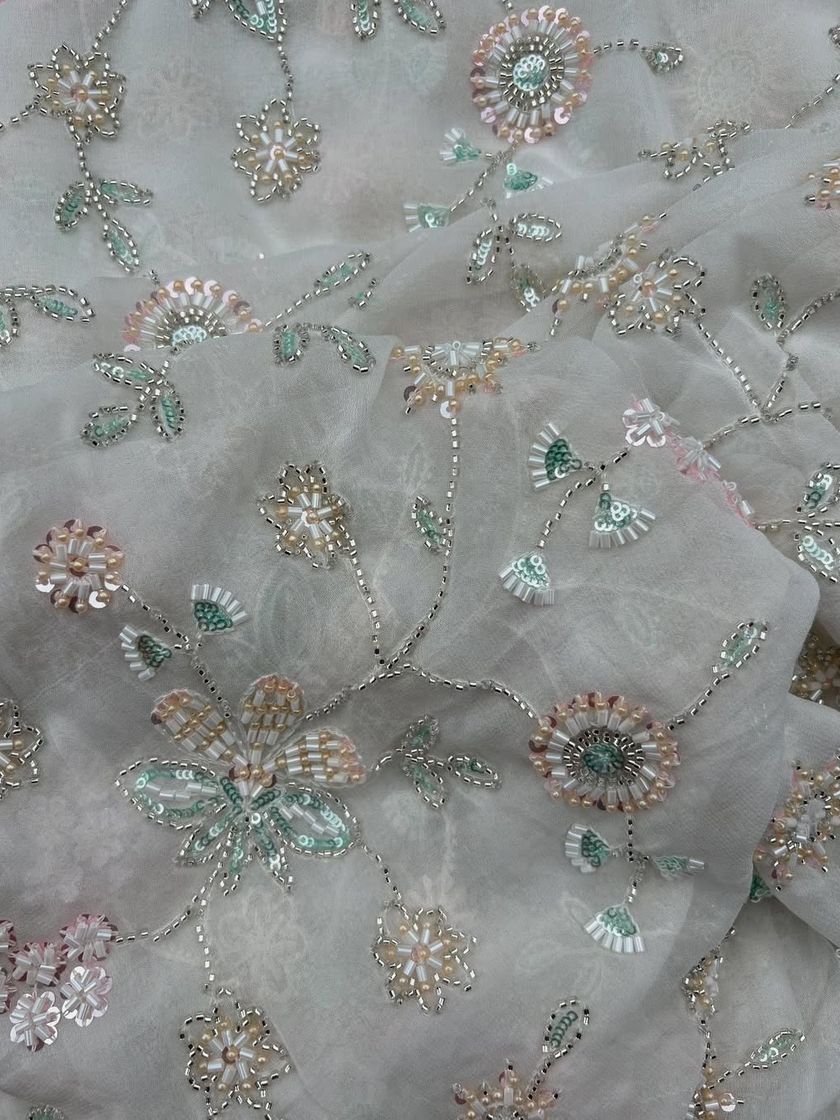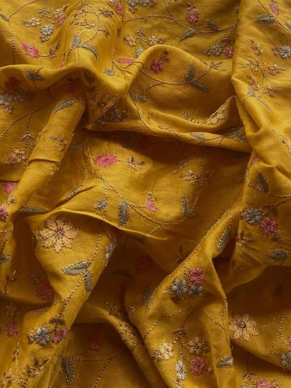 Discover our collection of light, airy, and ethereal fabrics. Featuring delicate organza with appliqué and embroidery, flowing georgette with Lucknowi work, and shimmering tissue fabrics, this range is perfect for creating graceful sarees, dupattas, and layered outfits.