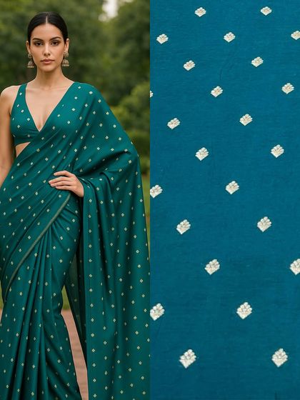 - Weave: Jacquard power-loom construction incorporating Gold/Silver/Antique Zari threads.