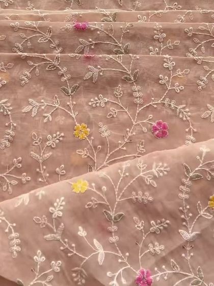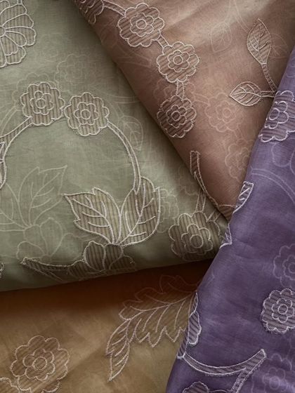 Known for its crisp texture and subtle sheen, my organza fabric is perfect for creating structured and celebratory outfits. I offer a range of designs, from bold floral embroidery to delicate threadwork, ideal for custom lehengas, sarees, and festive suits.