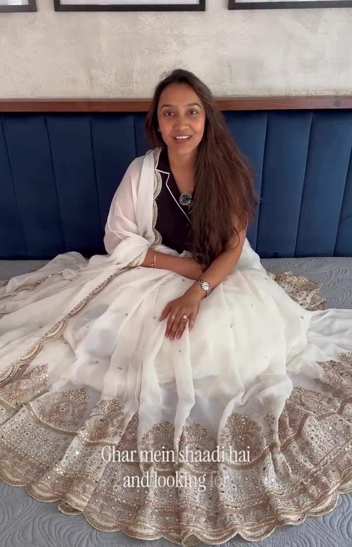 My semi-stitched suits offer the perfect solution for a flawless fit. I provide you with a beautifully designed and embroidered front panel and fabric, while the side seams and bottom are left open for your tailor to customize to your precise size and preferred style, be it a palazzo, churidar, or straight pant.