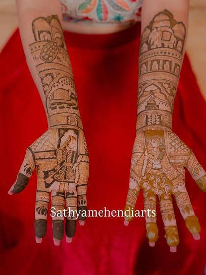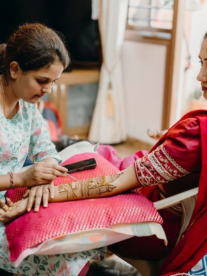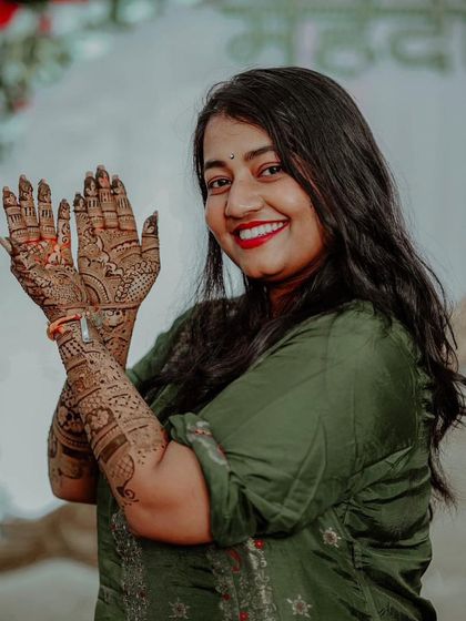 Started with a tiny mehendi book nan appa gave me - I still keep it safe, like a treasure. My family, my roots in Chikkaballapur and Bangalore, they’re everything. Sometimes, you’ll catch me trekking Skandagiri Hills! Mehendi isn’t just work for me; it’s love, tradition, and connection. Every bride, every event, feels personal. From first mehendi to wedding day, clients become friends. I pour my heart into every design.