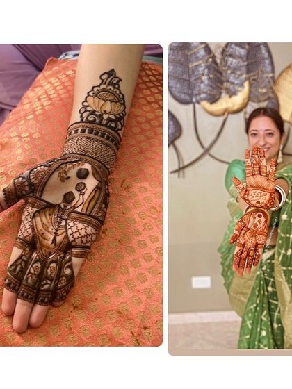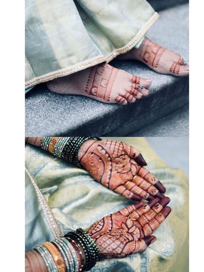 I create custom bridal mehendi with your story and details using organic henna, and I can do designs for your family and friends too.