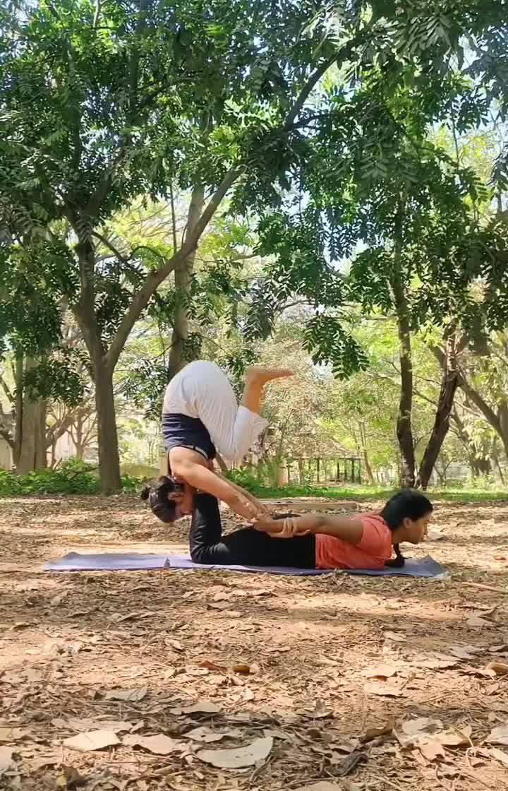Yoga can also be about connection, trust, and play. Practicing with a partner, whether it's a simple assisted stretch or a dynamic Acro Yoga pose, builds communication and is a whole lot of fun. These are moments of shared strength and balance from my practice and collaborations.