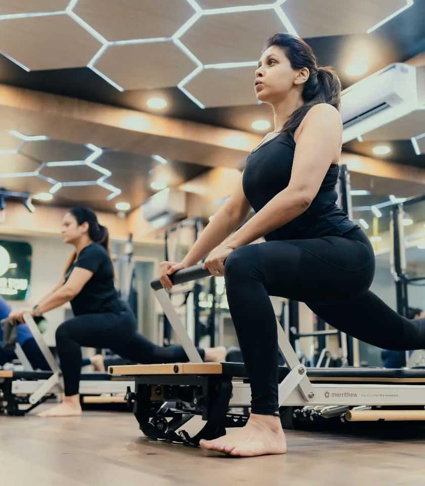 Experience the energy of our group sessions at my Hauz Khas studio. Each class features dynamic, challenging workouts on the Pilates reformer, designed to build core strength, improve flexibility, and tone your entire body.