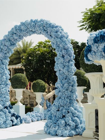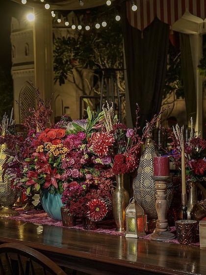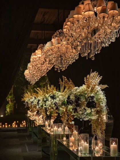 - Some couples go for massive, designer wedding florals like black-and-white Chanel dinners, blue Dior Mehendi setups, or Moroccan Bazaar vibes. We’re good at creating immersive wedding event styling, so every bit of the place feels connected and not random.