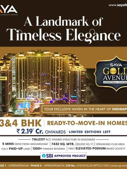 Luxury Homes & Premium Commercial Spaces - We do 3BHK, 4BHK, penthouses, and high-street retail space in NCR. Think Saya Gold Avenue, Saya South X.