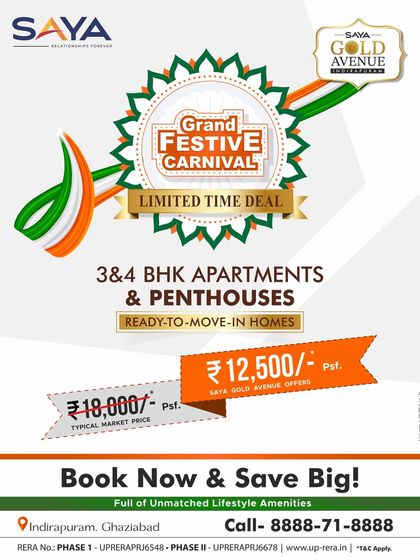 Luxury Homes & Premium Commercial Spaces - We do 3BHK, 4BHK, penthouses, and high-street retail space in NCR. Think Saya Gold Avenue, Saya South X.