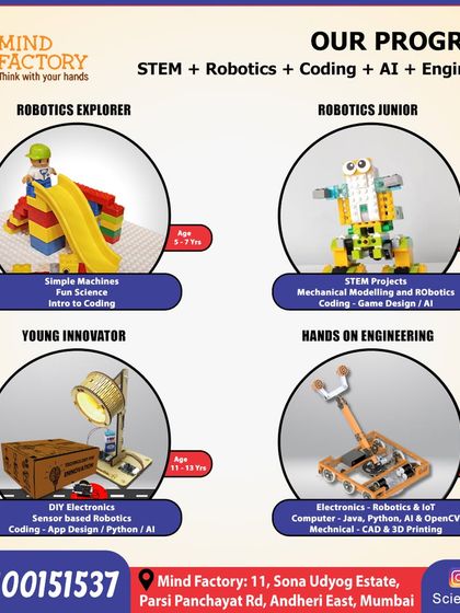We help kids learn robotics, coding, and electronics by building real projects with hands-on kits in age-specific programs.