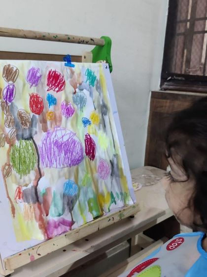 We offer both online and in-person art classes focused on process-based creativity rather than final outcomes. Our sessions incorporate painting, drawing, and sensory play activities designed to nurture young artists' natural creativity and self-expression.