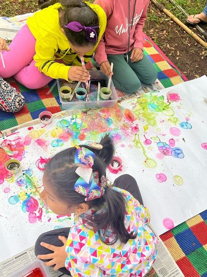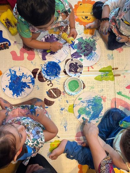 We run hands-on themed art parties where kids create freely, get messy with safe materials, and enjoy sensory play at different locations across Bangalore.