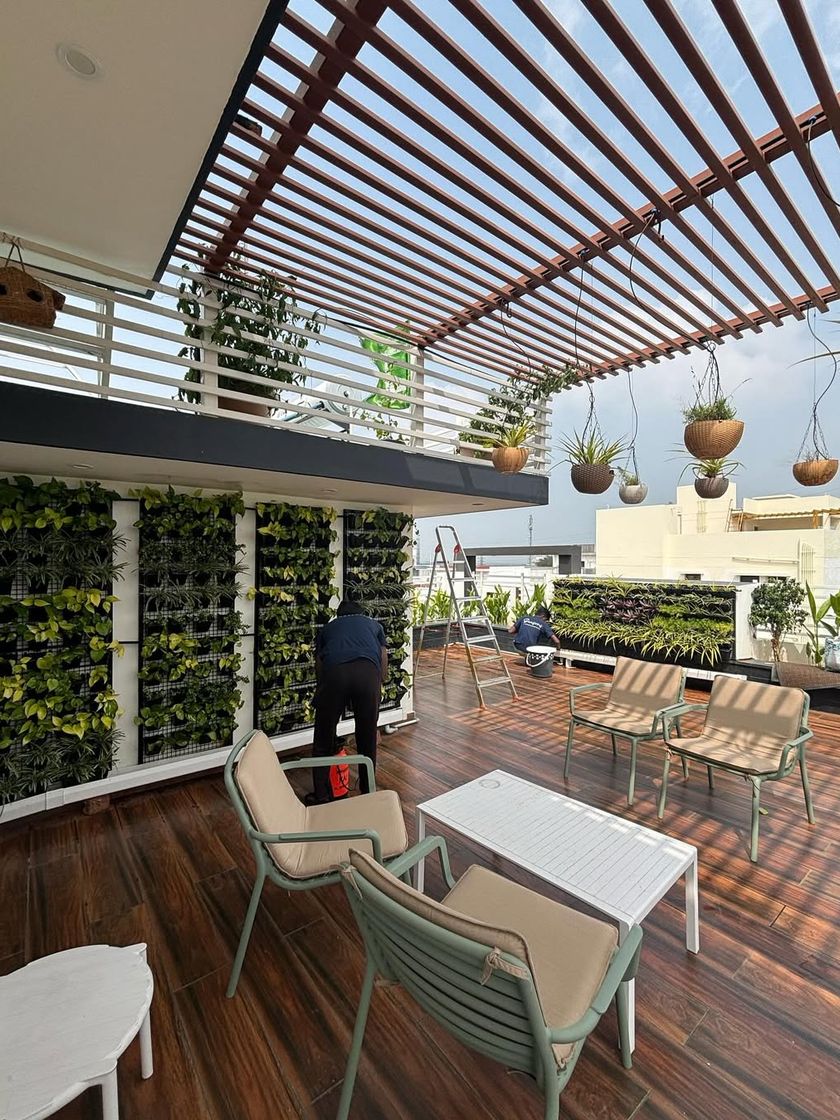 We partner with cafes, hotels, offices, and institutions to create landscapes that enhance ambiance and guest experience. Our work includes everything from lush jungly bakery gardens and sleek hotel entrances to calming green interiors for corporate offices and public walkways.