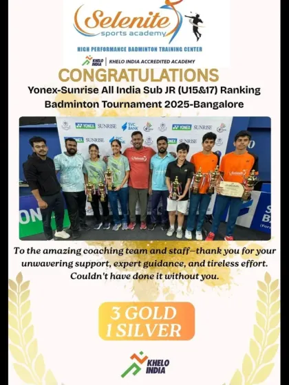 We’re Selenite Sports. For us, badminton isn’t just a sport, it’s a grind. KHELO INDIA gave us a thumbs up, and we wear that badge like a medal. Our centers in Bangalore and Coorg—full of sweat, noise, and dreams. Kids and adults, we push everyone hard. Podium moments, medals, hugs—those are our fuel. We’re coaches, yeah, but also family. Your grit? That’s our pride, always.