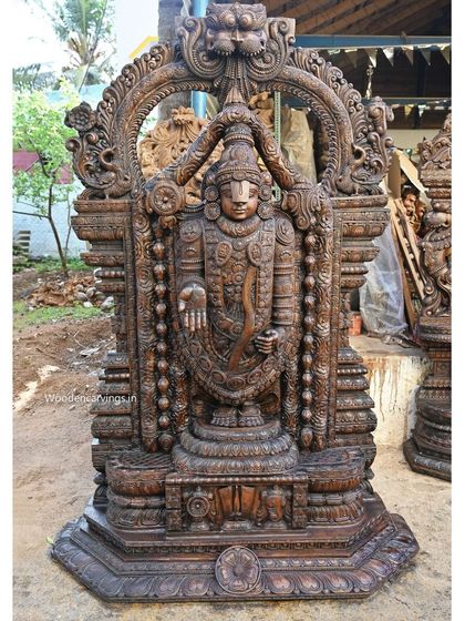 Handcrafted Temple-Inspired Sculptures - We make GI-certified wooden idols, large panels, Yaali brackets, and custom wooden door entrances in natural or hand-painted antique finishes.