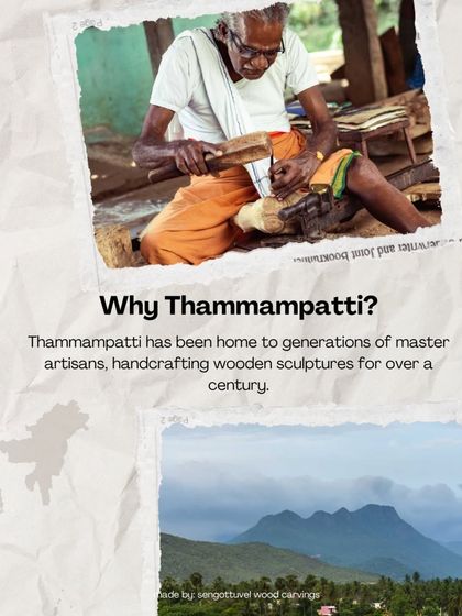 For me, wood carving isn’t just a job - it’s my family’s story, rooted in Thammampatty, Salem. Our style comes straight from the same hands that shaped South Indian temple art. Every piece is GI-certified, so what you get isn’t just a showpiece, but a slice of our heritage.