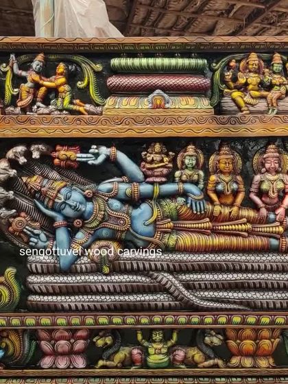 These are our most ambitious works, featuring large-scale, intricate relief panels that tell the epic stories of Hindu mythology. We craft scenes like the Dasavatharam, Meenakshi Thirukalyanam, and the reclining Sri Ranganathar, available in sizes up to 8 feet and in both multicolored and natural wood finishes.