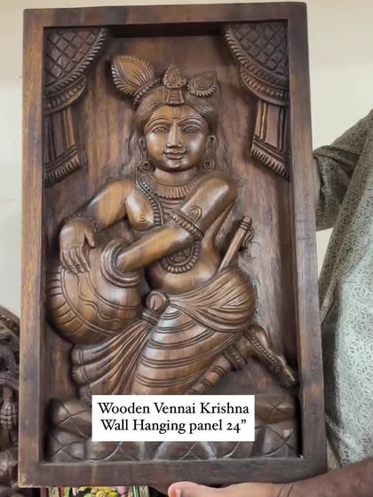 Explore the divine stories of Goddess Lakshmi and the avatars of Lord Vishnu. This collection features Dasavatharam panels, carvings of Ashta Lakshmi, Gajalakshmi, Krishna, and Sri Ranganathar. These pieces are available as large narrative panels and smaller statues in a variety of finishes.