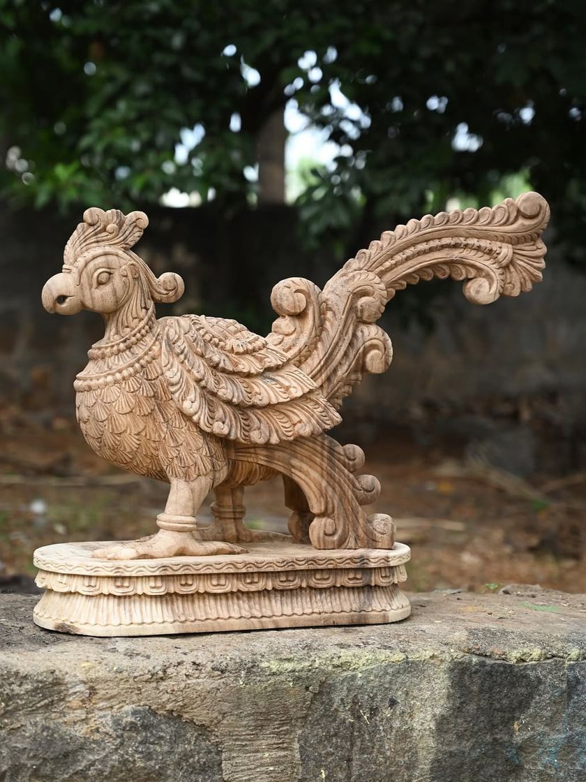 Our artisans bring to life the rich tapestry of Hindu mythology, carving not just gods but also the celestial beings and sacred animals that accompany them. This collection features the mythical Yaali, the divine Hamsa bird, auspicious parrots, and the revered Nandi bull, each piece a work of art in its own right.