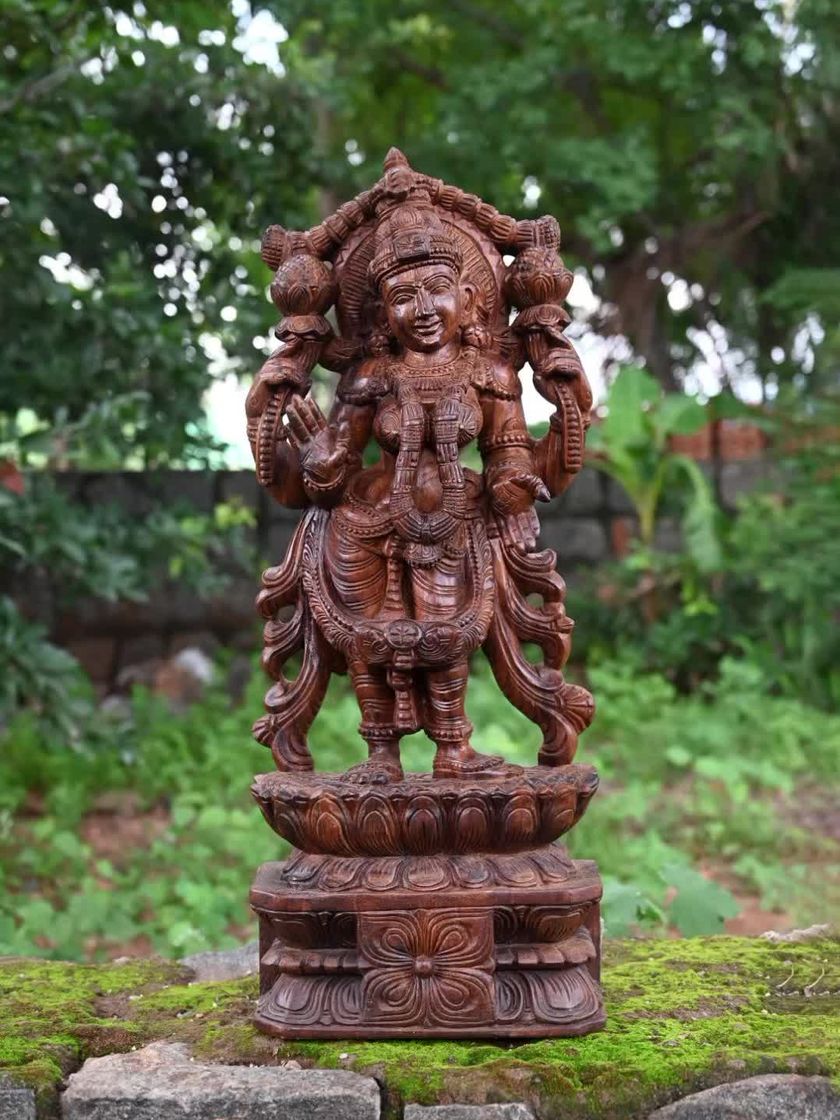 This collection celebrates the various forms of the Goddess, from Saraswati, the patron of arts, and Lakshmi, the bestower of wealth, to the fierce protector Amman and the celestial Apsaras. Each sculpture is carved to embody the unique attributes of the deity, available in both classic wood and vibrant painted finishes.