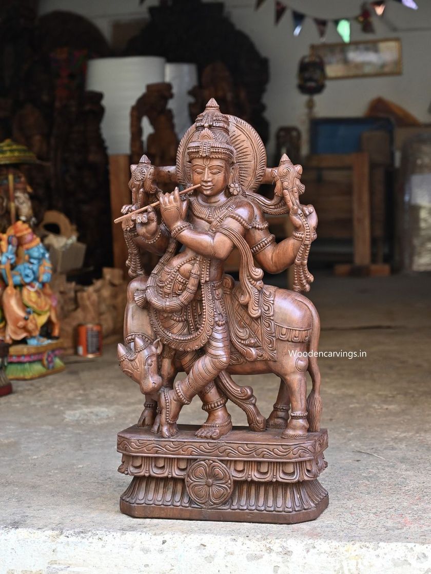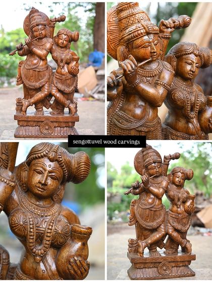 Our sculptures of Lord Krishna capture his divine charm and grace, from his solitary form as Venugopal playing the flute to his eternal dance with Radha. Each piece is carved with lyrical quality, reflecting the music and love that Krishna embodies. We offer these in various sizes and finishes.