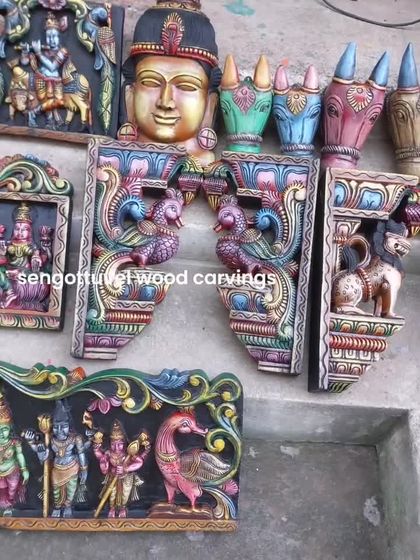 Elevate your walls with our collection of hand-carved wooden panels, masks, and brackets. These pieces, featuring deities, mythical creatures, and traditional motifs, are designed to add a touch of Thammampatty's heritage to your interior spaces. They are available in both classic wood and colorful antique finishes.