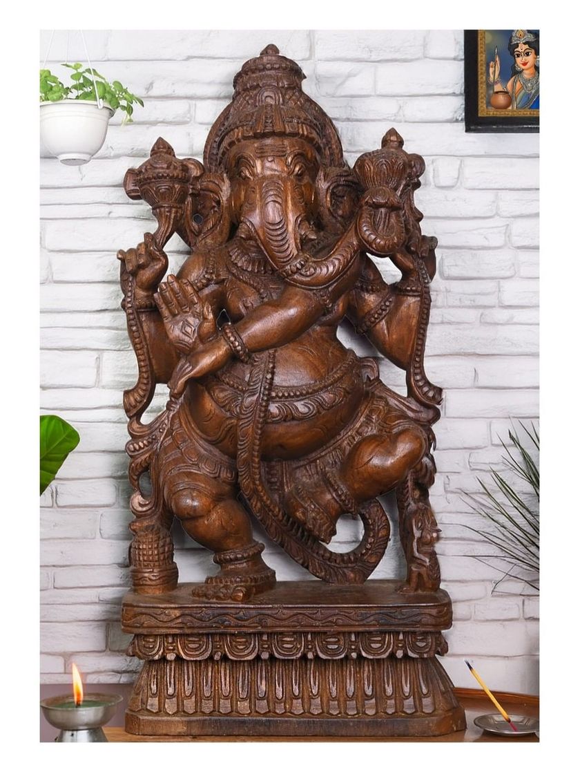 As the remover of obstacles, Lord Ganesha is one of our most requested deities. We offer a wide array of Ganesha idols, from the dancing Nritya Ganapati to the serene reclining form, and the auspicious Mappillai Ganesha. Each statue is available in various sizes and finishes, including classic wax brown and vibrant hand-painted colors.