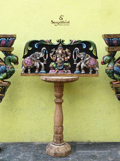 Handcrafted Temple-Inspired Sculptures - We make GI-certified wooden idols, large panels, Yaali brackets, and custom wooden door entrances in natural or hand-painted antique finishes.