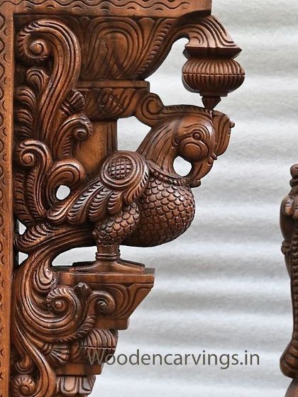 We craft decorative dome-fixed mandapams featuring standing Yaazhi figures, specifically designed for pooja room decoration. Our mandapams showcase intricate traditional motifs and detailed craftsmanship through handcrafted wooden artistry.