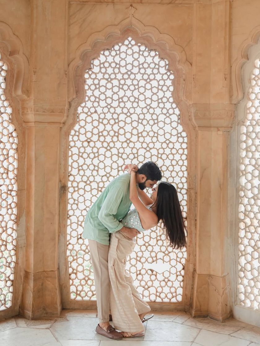 We specialize in creating regal and elegant pre-wedding portraits set against the stunning architecture of India's palaces and heritage properties, particularly in Jaipur. We use the grandeur of the location, the play of light through archways, and vibrant colors to tell a story that is both majestic and deeply personal.