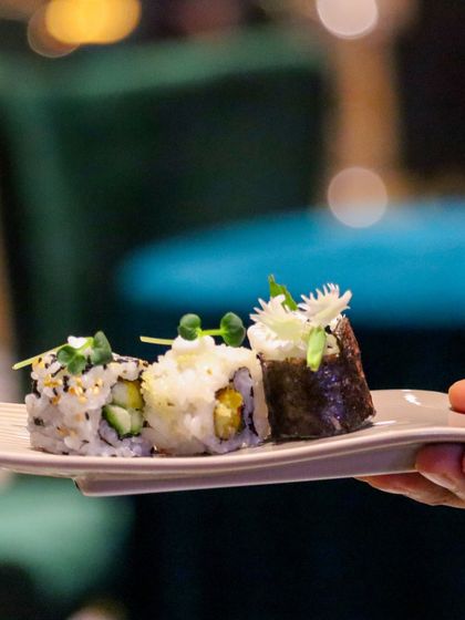 Our signature canapés are designed to spark conversation and delight the senses. We offer a curated selection of bite-sized masterpieces, from Lotus Root Shammi with Parmesan Foam to Crunchy Taco Cups, served with seamless and polished hospitality.