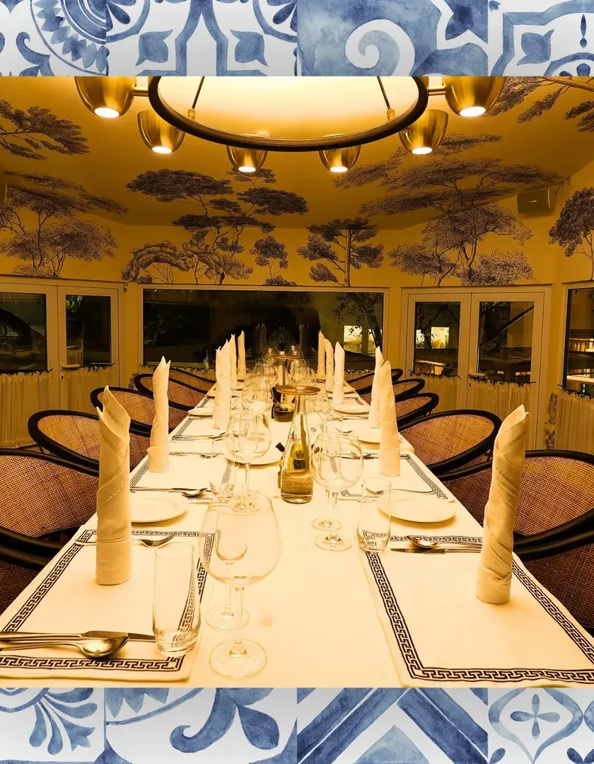 My indoor dining room provides a more formal, air-conditioned space for business dinners, corporate events, or large family celebrations. We also have larger tables on the terrace for groups who prefer to dine outdoors.