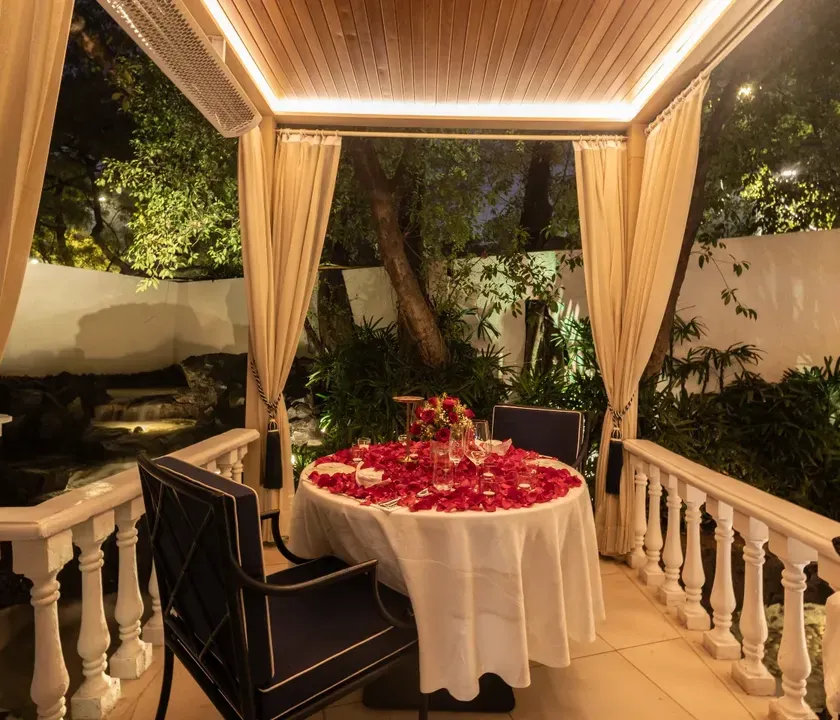 These private outdoor cabanas are where I create a little magic for anniversaries, proposals, or quiet date nights. I can arrange them with candles, flowers, and other personal touches to make the moment truly special and memorable.