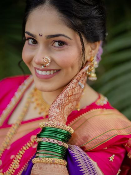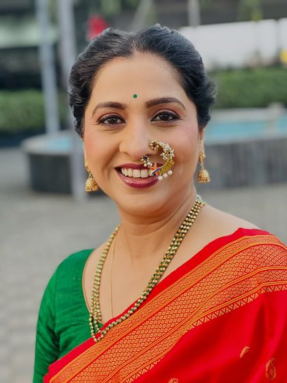 I specialize in creating that perfect 'मराठमोळा थाट' (Maharashtrian grandeur) with makeup, hair, and Nauvari saree draping. My true reward is seeing the happiness on a bride's face when her vision comes to life.